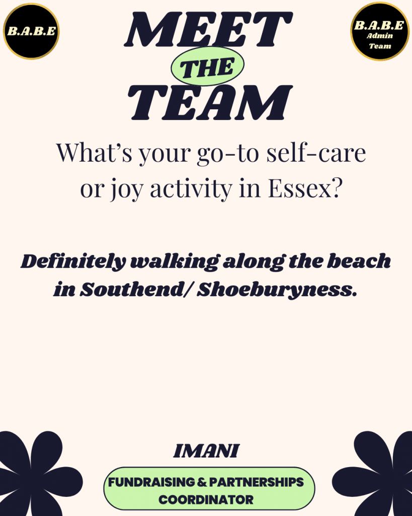 2- We have a 250+ membership group for Black, mixed race women and non-binary people in Essex who social and meet up to explore Essex. This can be joined via our waiting list that is open in June and December.